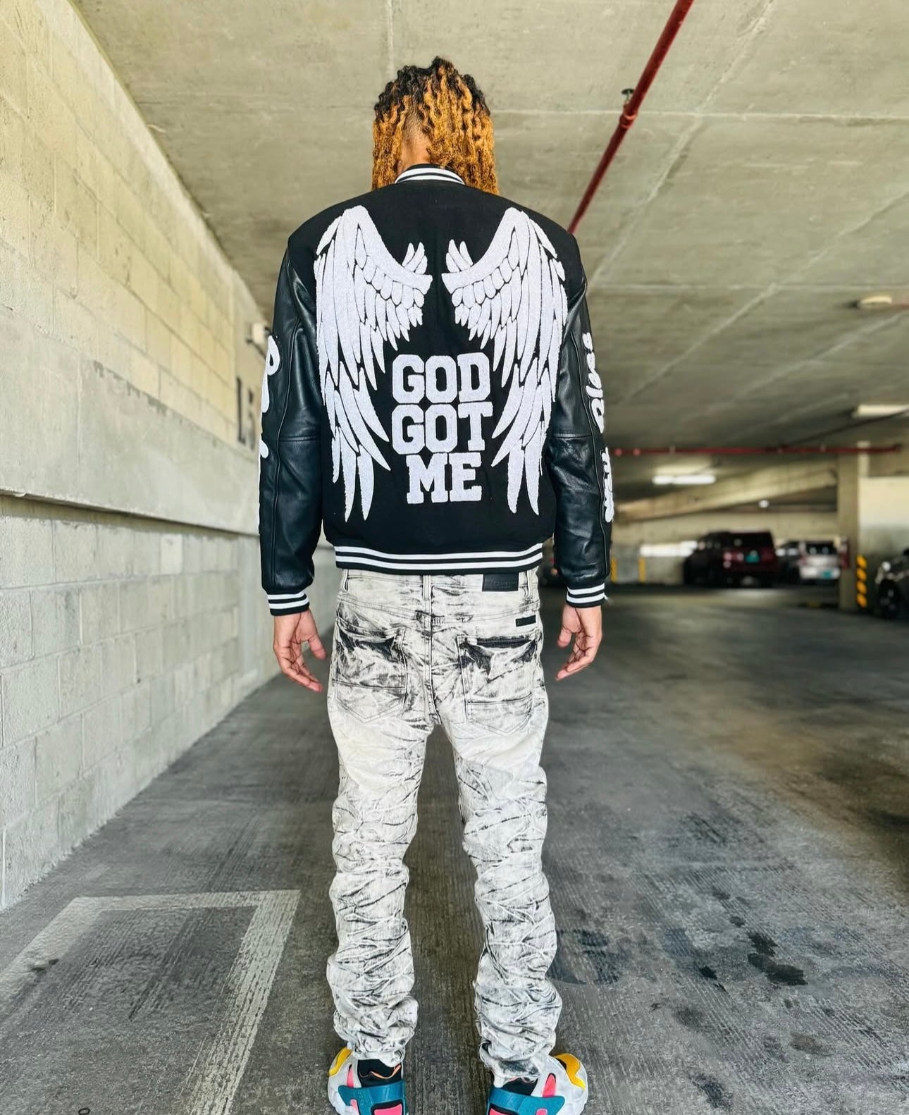 Step out with confidence in the God Got Me™ Varsity Jacket — a bold mix of streetwear style and faith-driven energy. Featuring a premium wool body, black vegan-leather sleeves, and detailed 3D embroidery, this jacket is built to stand out, making it the perfect statement piece for your winter drip